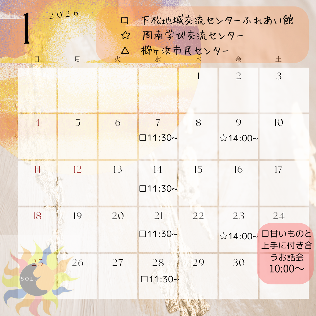 - 2026年1月24日<div>10:00~</div><div>下松地域交流センター和室</div><div>『甘いものと上手に付き合うお話会』を開催します。<br></div><div><br></div><div>みなさん、甘いものはお好きですか??</div><div>はい、私も大好きです( ´∀` )</div><div><br></div><div>ついつい、甘いものに手が伸びるってありますよね、、、</div><div>いけないとわかっていても、、、</div><div>??いけない??なぜでしょう??</div><div>太るから?肌が荒れるから?人それぞれ思うことはあると思います。</div><div>が、しかし甘いものって悪いものじゃない!</div><div>むしろ、白砂糖は薬と言っていいほど、回復力やエネルギーに満ちているものなんです。</div><div>では、なぜ甘いものを食べ続けるのか??</div><div>太るほどたべてしまうのか??</div><div>その原因は一体何でしょう?</div><div>それはね、人それぞれ体質や性質に合った食べ方をしていないからなんですねぇぇ</div><div>そこを紐解いてみなさまそれぞれに知ってもらい、甘いものを食べながら軽く生きる~</div><div>を目標にしていこうよ!っていうお話会でございます!</div><div><br></div><div>当日は砂糖使っていない、お気持ちですがお菓子&お紅茶をご用意させていいただきます♪</div><div>ぜひご参加心よりお待ちしております!</div><div><br></div><div>予約制になっておりますので、当HP又は公式ラインから【お話会参加希望、お名前】を送ってね♪</div>